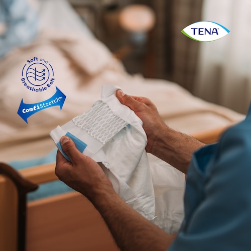 Plienkové nohavičky TENA ProSkin Flex s rýchloupevňovacím pásom sú navrhnuté s mimoriadnou pružnosťou, aby sa prispôsobili rôznym typom postavy, aj osobám so širším pásom. Poskytujú nielen pohodlie a vynikajúce bezpečie pri úniku moču, ale vďaka jedinečným inováciám dokážu znížiť fyzickú námahu opatrovateľov, čím je práca s nimi jednoduchšia a pohodlnejšia.